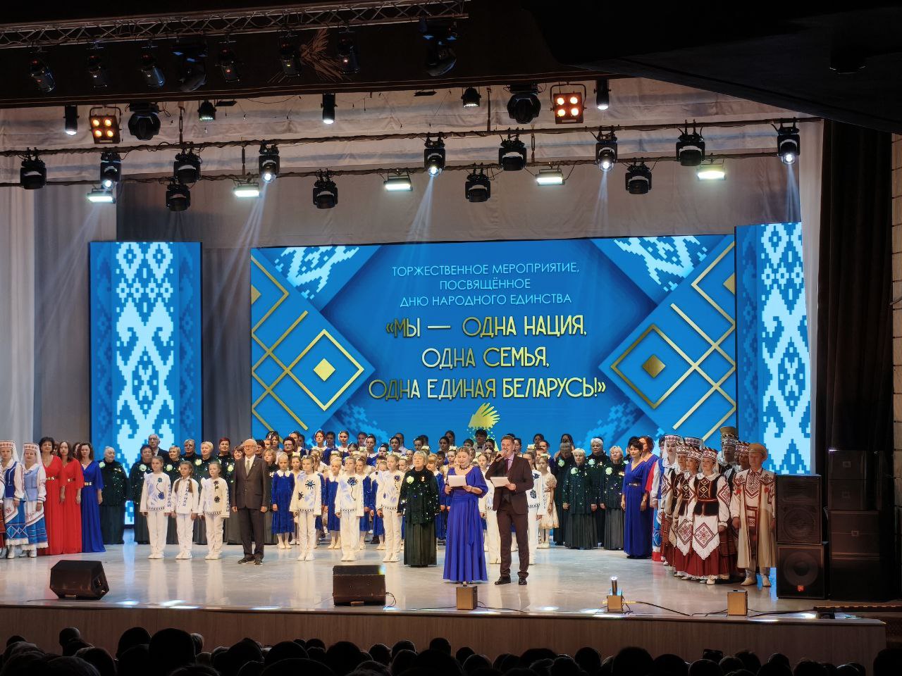 В рамках мероприятия состоялась концертная программа под названием "Мы - одна нация, одна семья, одна Беларусь!". Программа включала выступления местных артистов, которые исполнили песни и танцы, отражающие культурное разнообразие и единство белорусского народа. Атмосфера была наполнена радостью и гордостью за свою страну.